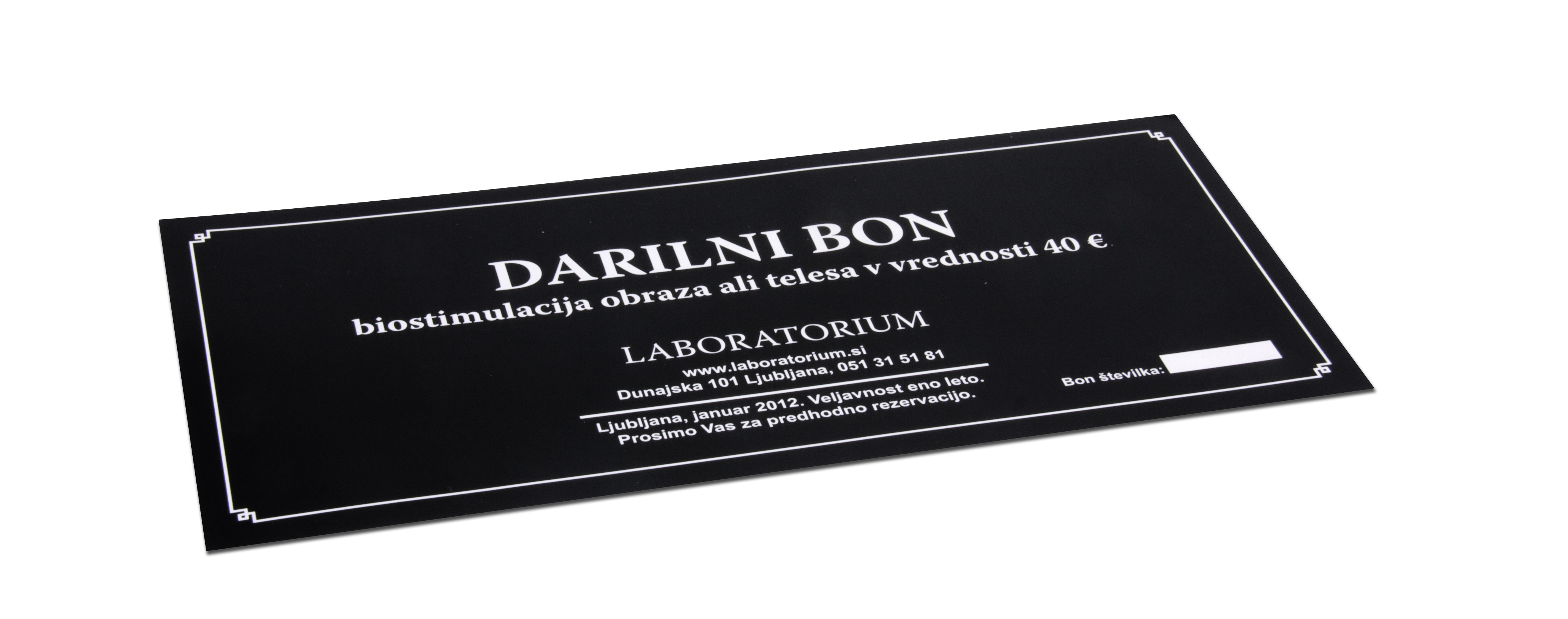 Potrebujete darilne bone za svoje podjetje ali samo želite nekomu podariti bon kot darilo? Vrednostni boni so popularni za tiste, ki ne vedo, kako izpolniti nekomu skrite želje. Boni imajo zaščito proti fotokopiranju in jih je težko ponarediti. Boni so oštevilčeni. Vrednost darilnih bonov je lahko različna. Darilne bone vam oblikujemo in jim izberemo pravi material in velikost. Za tiste, ki ne vedo, s čim obdarovati, je darilni bon prava rešitev. Darilne bone vam lahko izdelamo v manjših serijah in ji po potrebi po natisnemo, kolikor jih trenutno potrebujete.