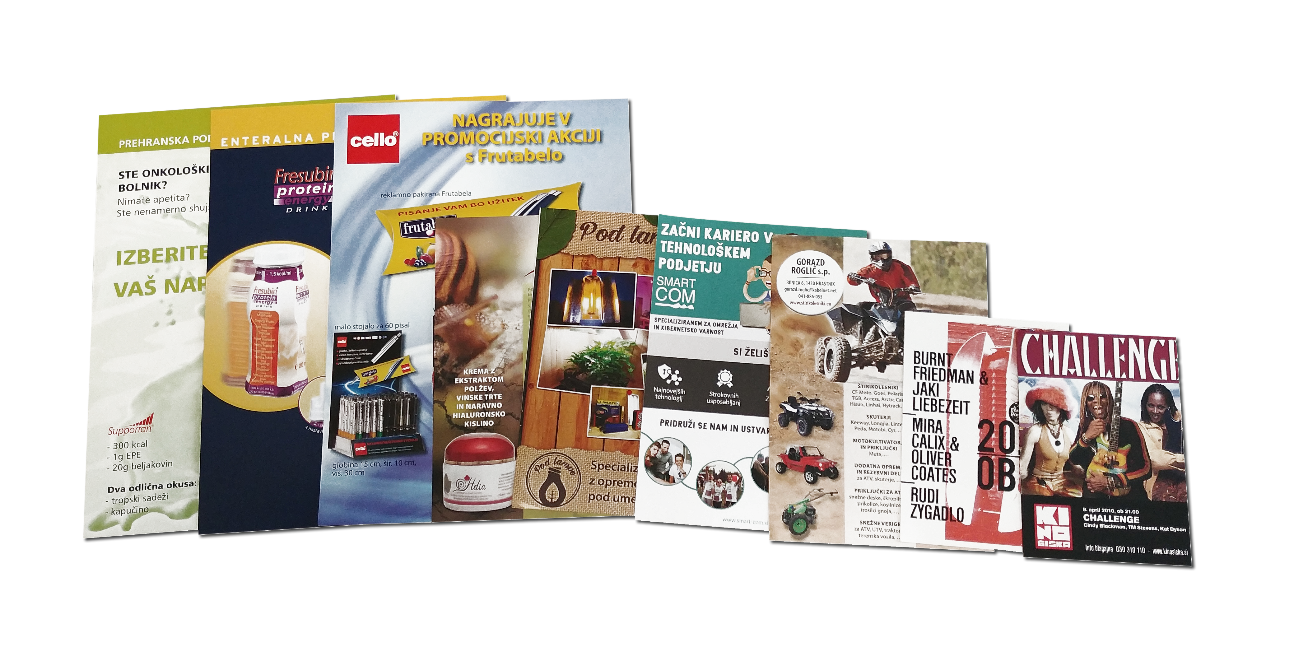 Studio Jager od 1992 tiska vizitke, letake, prospekte, zgibanke, plakate, kartice in vabila za podjetja po vsej Sloveniji. Večina naročil je pripravljenih v 2–4 delovnih dneh.